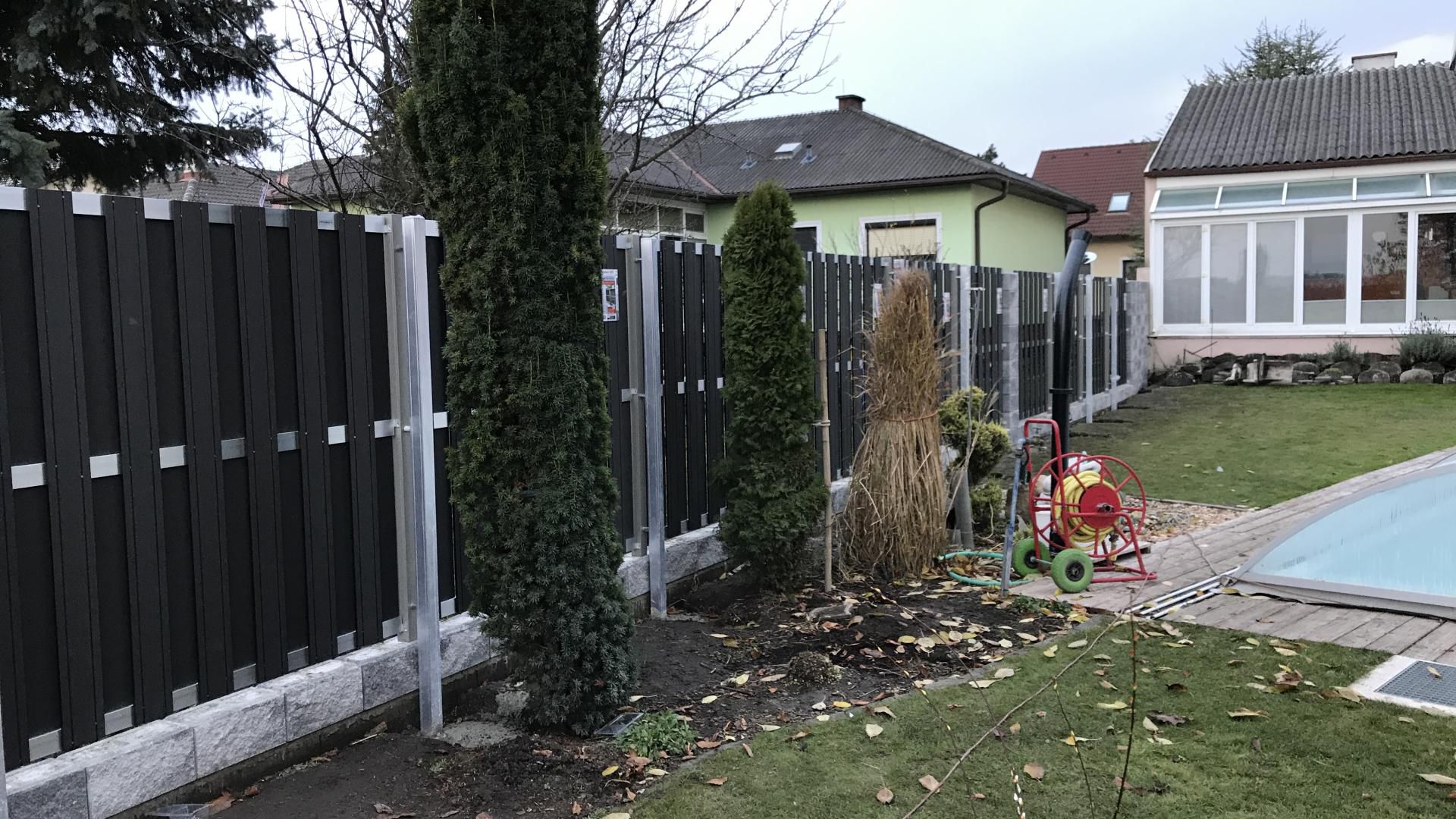 - Alu-Paneele mit tragenden Säulen und Doppelgitterzäunen sorgen für elegante, stabile Sichtblöcke und Grundstücksabgrenzungen.