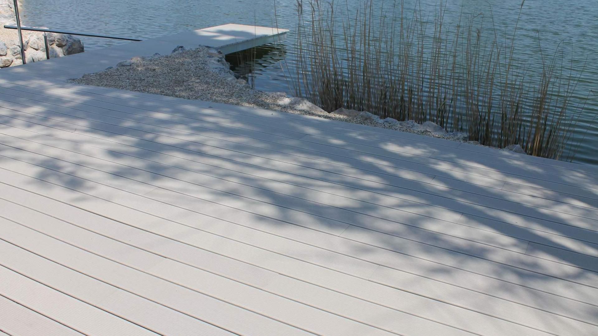 - Die WPC-Terrasse kombiniert Holzoptik mit Beständigkeit – pflegeleicht und angenehm in der Nutzung.