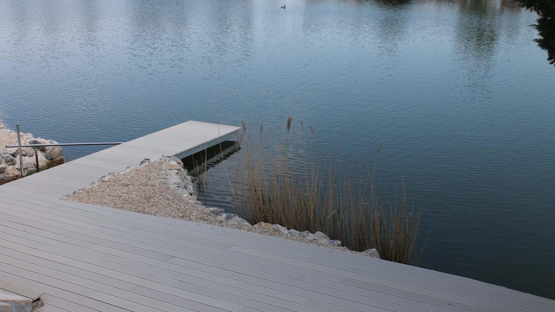 Im Referenzprojekt „Gartengestaltung“ realisierte BAUDRAUF ein umfassendes Außenraumkonzept, das Technik, Funktion und Ästhetik harmonisch verknüpft. Der Bereich umfasst vielseitige Elemente: Alu-Paneele mit Säulen, Doppelgitter- und Eckzäune, Natursteinmauer, Natursteinstufen, WPC-Terrasse, Wassersteg, Uferbefestigung und verschiedenartige Zäune – vom „grünen Gartenzaun“ bis zur eleganten Natursteinlösung.