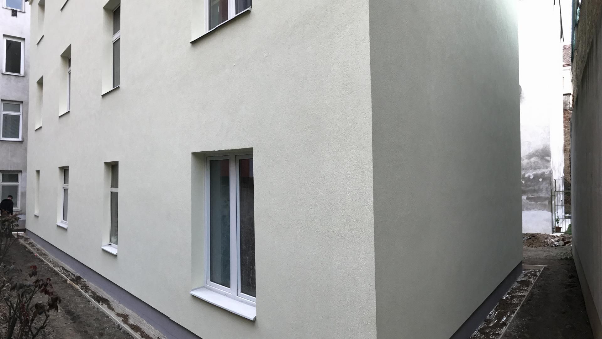 - Endlich: neuer, moderner Reibputz, der optisch eine zeitgemäße Fassade schafft und gleichzeitig die neue Bausubstanz schützt.
