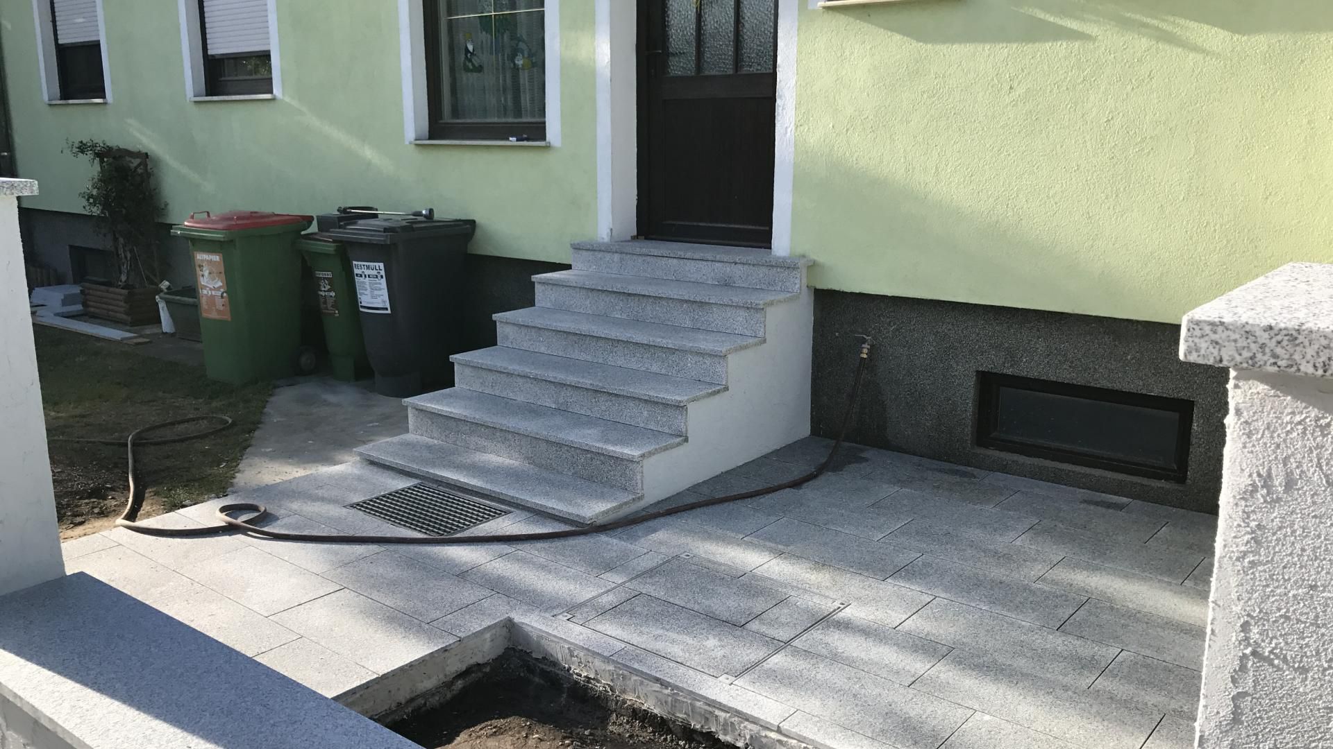 Was sichtbar geworden ist? Ein Außenbereich, der durch Stabilität und Design gleichermaßen überzeugt. Der Gartenzaun wirkt wieder solide, der Gehsteig sicher. Natursteinplatten am Eingangsbereich verleihen Eleganz. Die neue Garageneinfahrt hält auch widrigen Witterungsbedingungen stand. Das Gesamtbild symbolisiert Wertbeständigkeit – langlebig, pflegeleicht und stilvoll.
