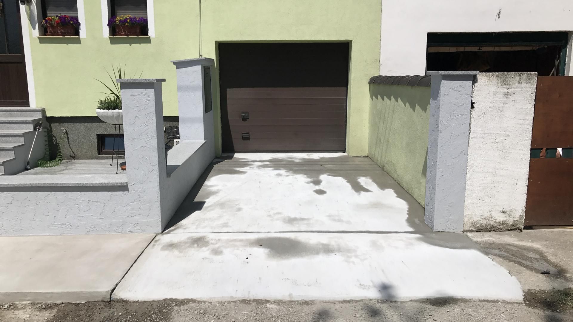 - Garageneinfahrt neu betoniert mit tausalzresistentem B7-Beton für höhere Langlebigkeit und Sicherheit im Winter.
